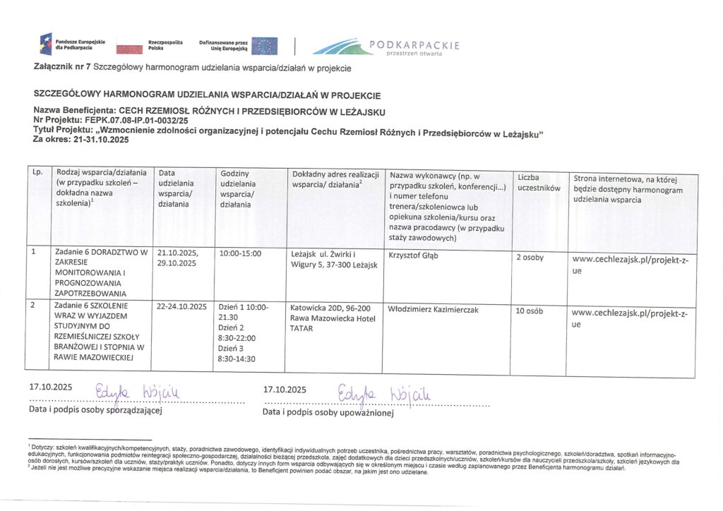 Realizacja wsparcia w ramach projektu: „Wzmocnienie zdolności organizacyjnej i potencjału Cechu Rzemiosł Różnych i Przedsiębiorców w Leżajsku ”. nr FEPK.07.08-IP.01-0032/25